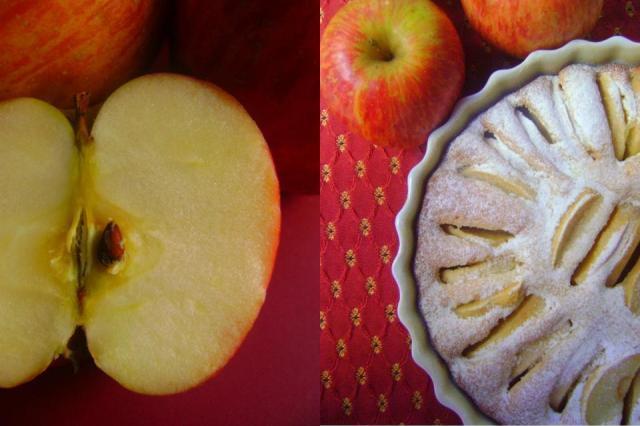 A massa é bem firme e amanteigada. Procure não acumular fatias de maçã no centro do bolo, eu mesma coloquei demais. Se ficarem muito acumuladas no centro você poderá ter problemas ao assá-lo, as bordas poderão já estar assadas e o centro ainda não, por causado excesso de umidade das frutas. Coloque no máximo três fatias, ou então coloque as fatias de maçã apenas ao redor!